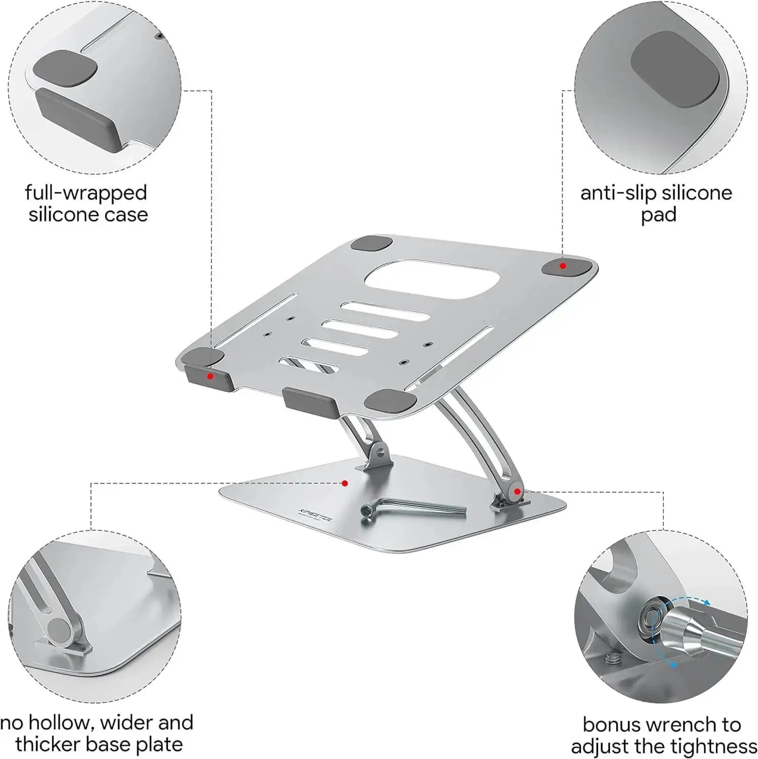 Elevate your laptop experience with the J21 Aluminum Alloy Laptop Stand. This stand offers multi-angle adjustability for comfortable viewing and improved ergonomics. Made from durable aluminum alloy, it provides stability and enhances airflow to keep your laptop cool during use.