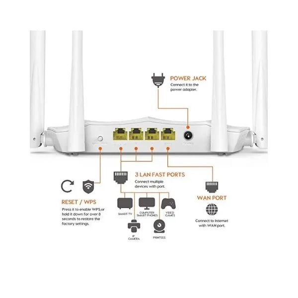 [High-speed IPv6 router] DualBand AC1200 router combines 2.4GHz and 5GHz signals to increase speed and reduce interference, and the total bandwidth is 1167Mbps (2.4GHz=300Mbps and 5GHz=867Mbps)/reduced).¶