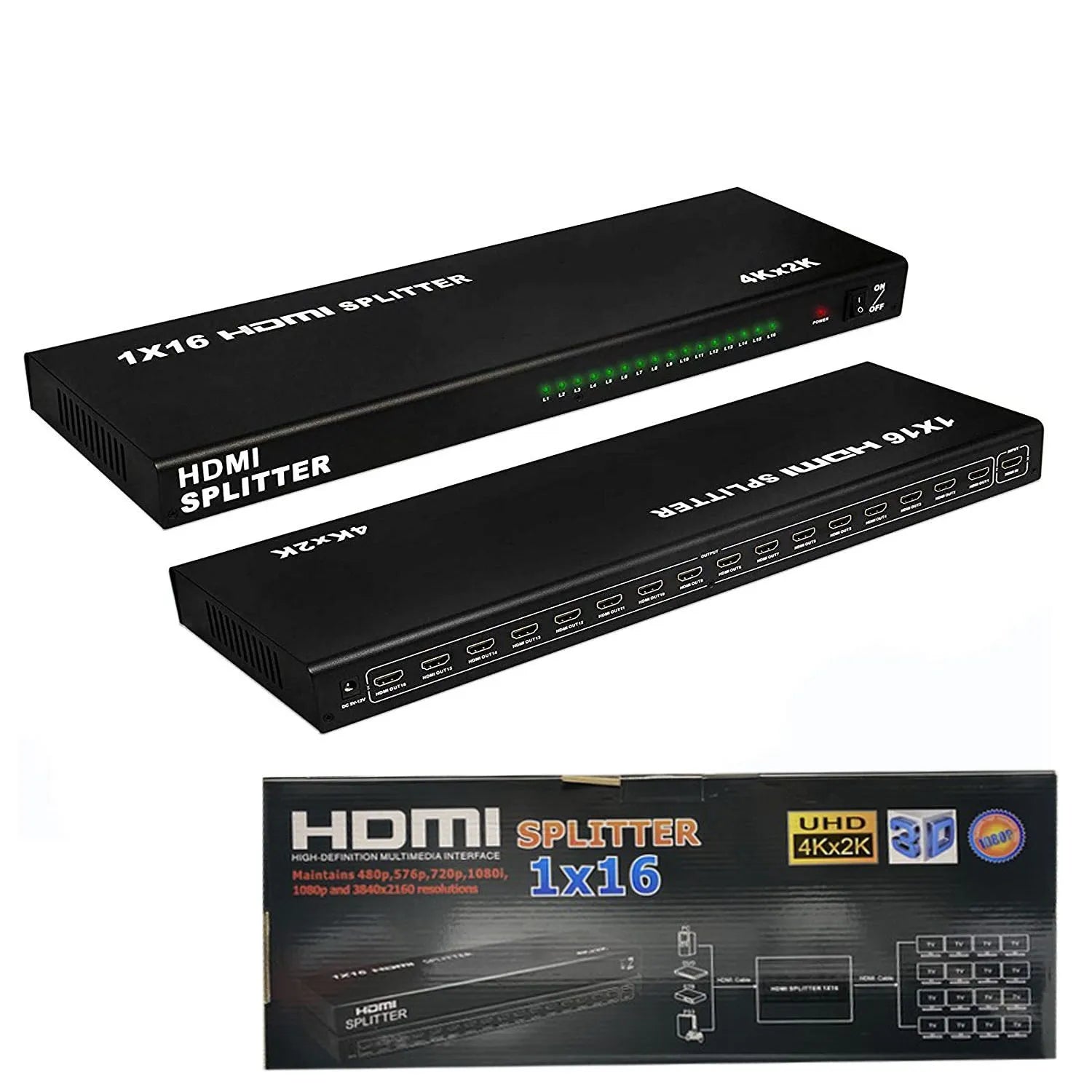The 1×16 HDMI Splitter uses a single HDMI Source?accessing to multiple HDMI sinks. It allows one HDMI device to be split easily to sixteen HDMI compatible monitors or projectors. The Splitter can also be placed at the end of a long HDMI Cable to regenerate the HDMI Signal. Resolution up to 3840X2160/30Hz.