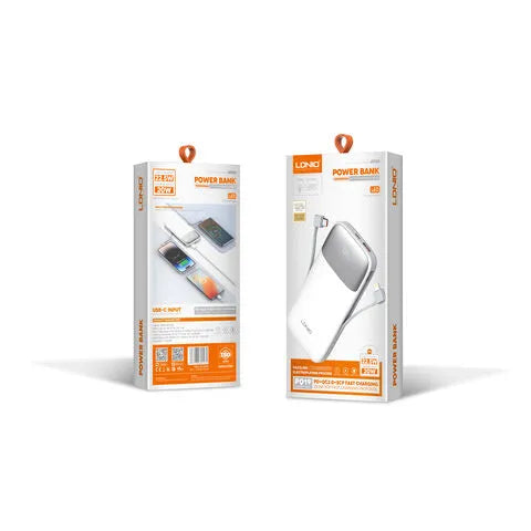 LDNIO PQ19 10000mAh 22.5W USB-C Fast Charging Power Banks smart LED Display Built-in Charging Cable Power Bank