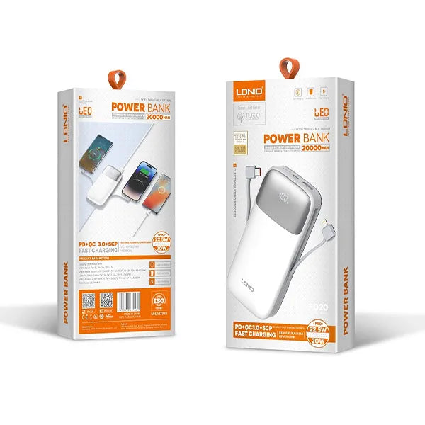 LDNIO PQ20 20000mAh 22.5W USB-C Fast Charging Power Banks smart LED Display Built-in Charging Cable Power Bank