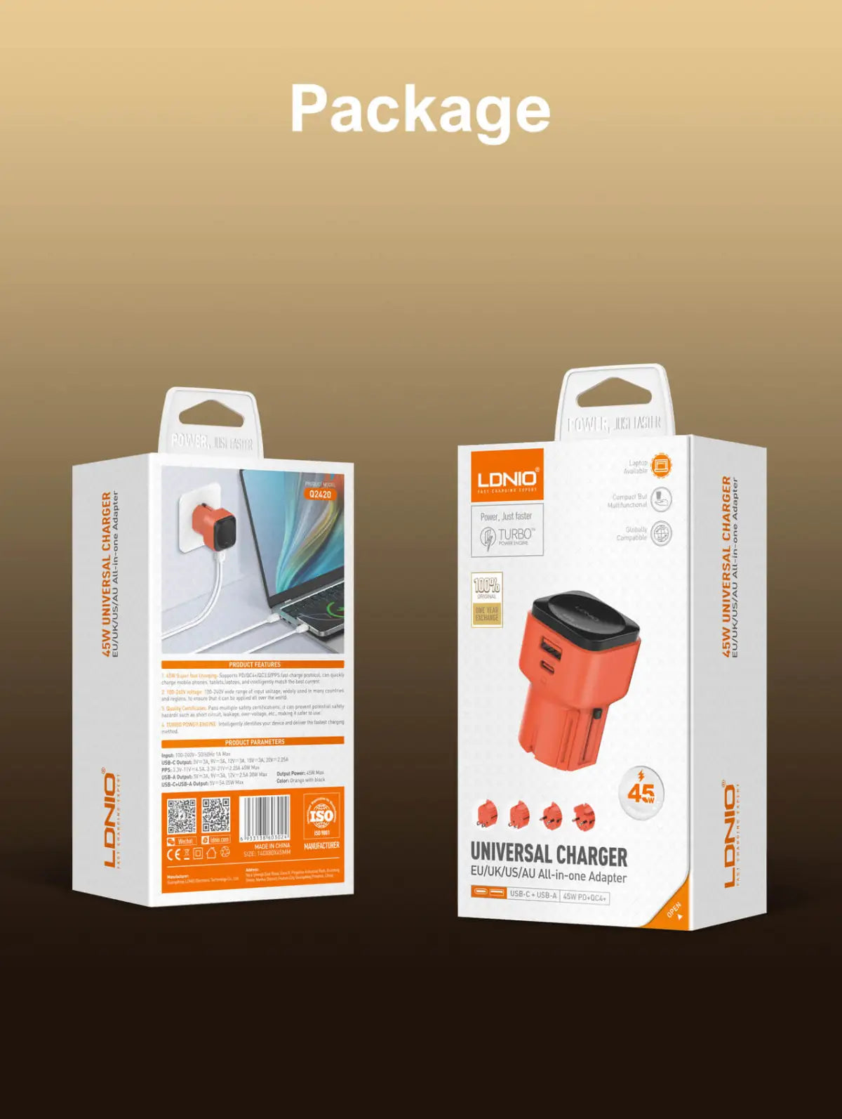 LDNIO Q2420 GaN45W All-in-one Adapter with C-C Cable