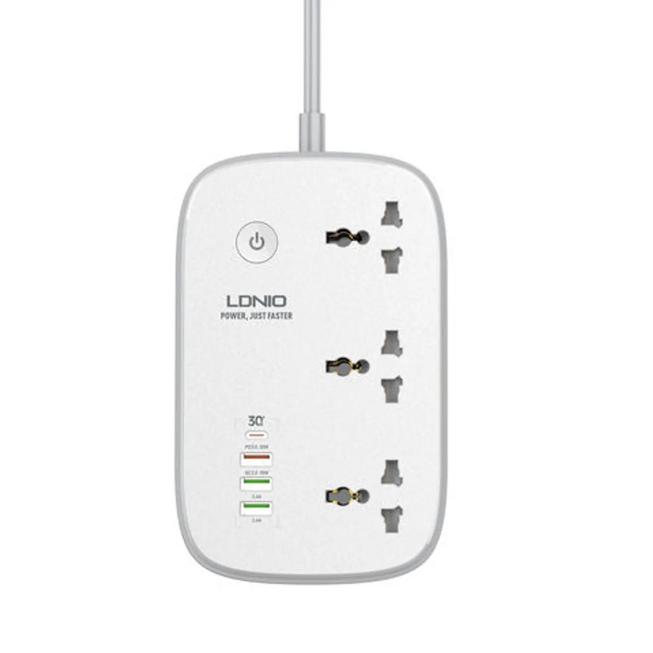The LDNIO SCW3451 WiFi Smart Power Strip redefines power management by combining intelligence and efficiency. With 3 universal electrical outlets, 1 PD, and 1 QC 3.0 fast charging, this power strip is equipped to handle a variety of devices.